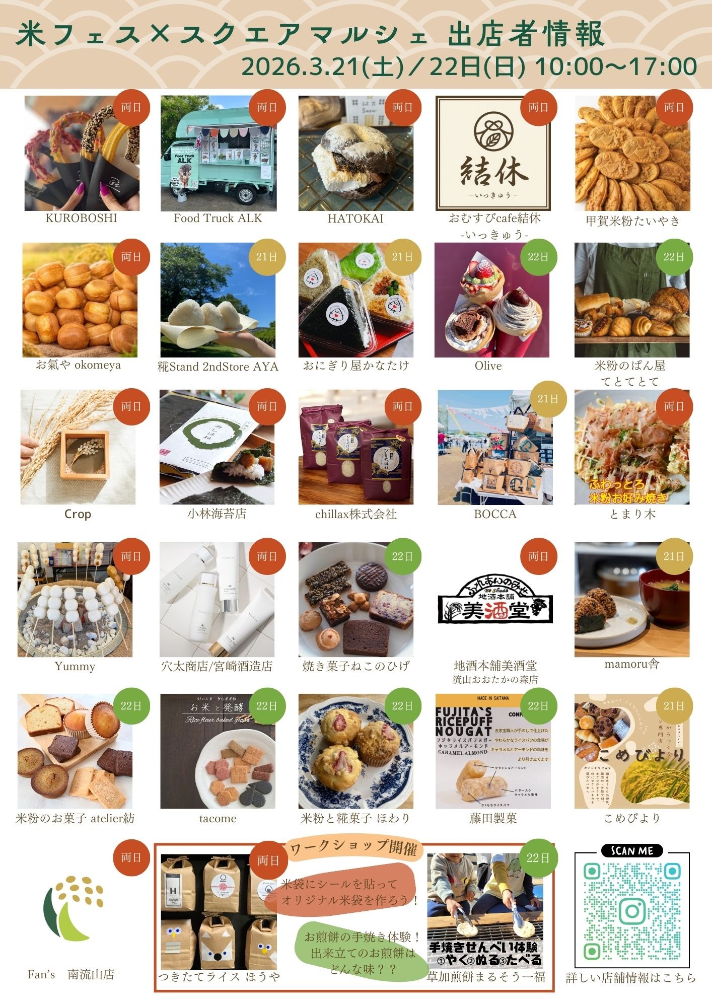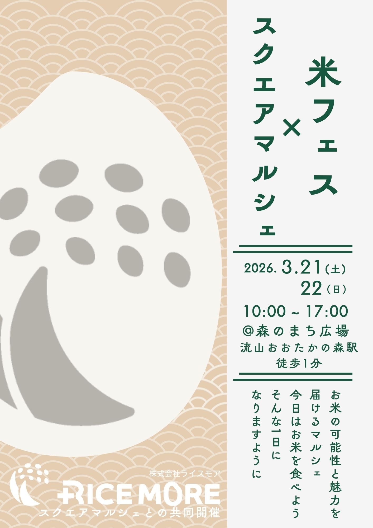 3月21日(土)・22日(日)は「米フェス×スクエアマルシェ」へお立ち寄りください。